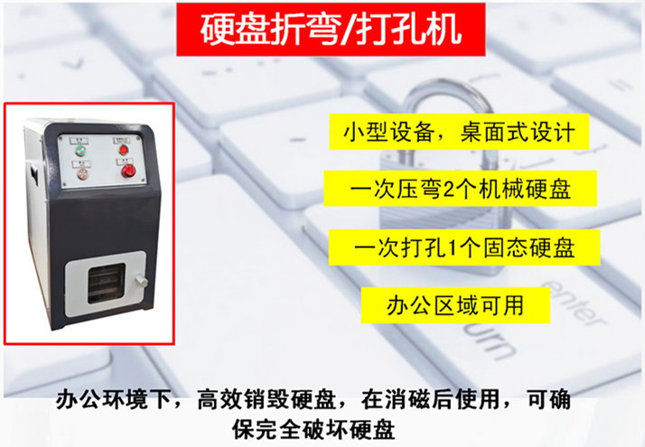 在消磁后使用硬盤折彎?rùn)C(jī),可以機(jī)械性破壞硬盤,損壞讀寫頭和軸承,使數(shù)據(jù)無法被恢復(fù)。